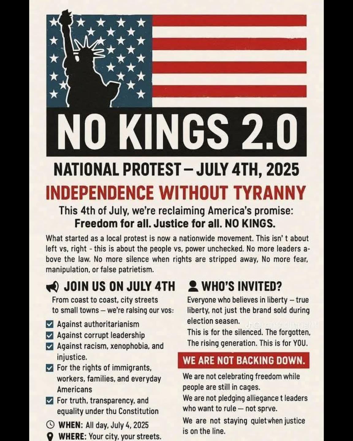 The Progressive Faith Community of the CSRA is hosting a No Kings 2.0 rally on July 4, 2025 from 5:00 PM to 7:00 PM at the intersection of Edgefield Road and Clearwater Belvedere Road in North Augusta, SC. We hope you will come out to support this effort!